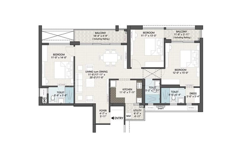 3 BHK Apartment | 1181 SFT | East Facing | DN Pallaciya